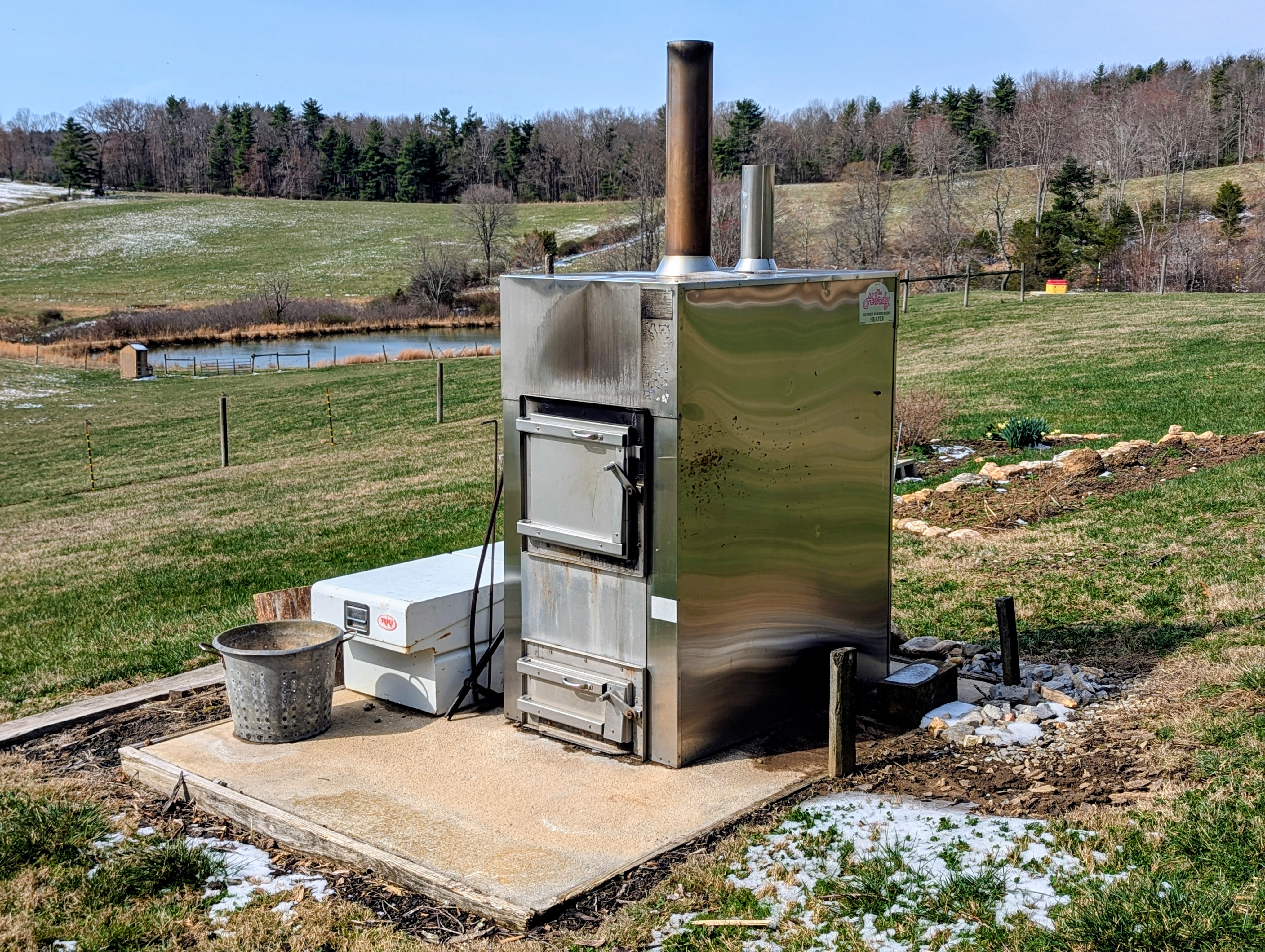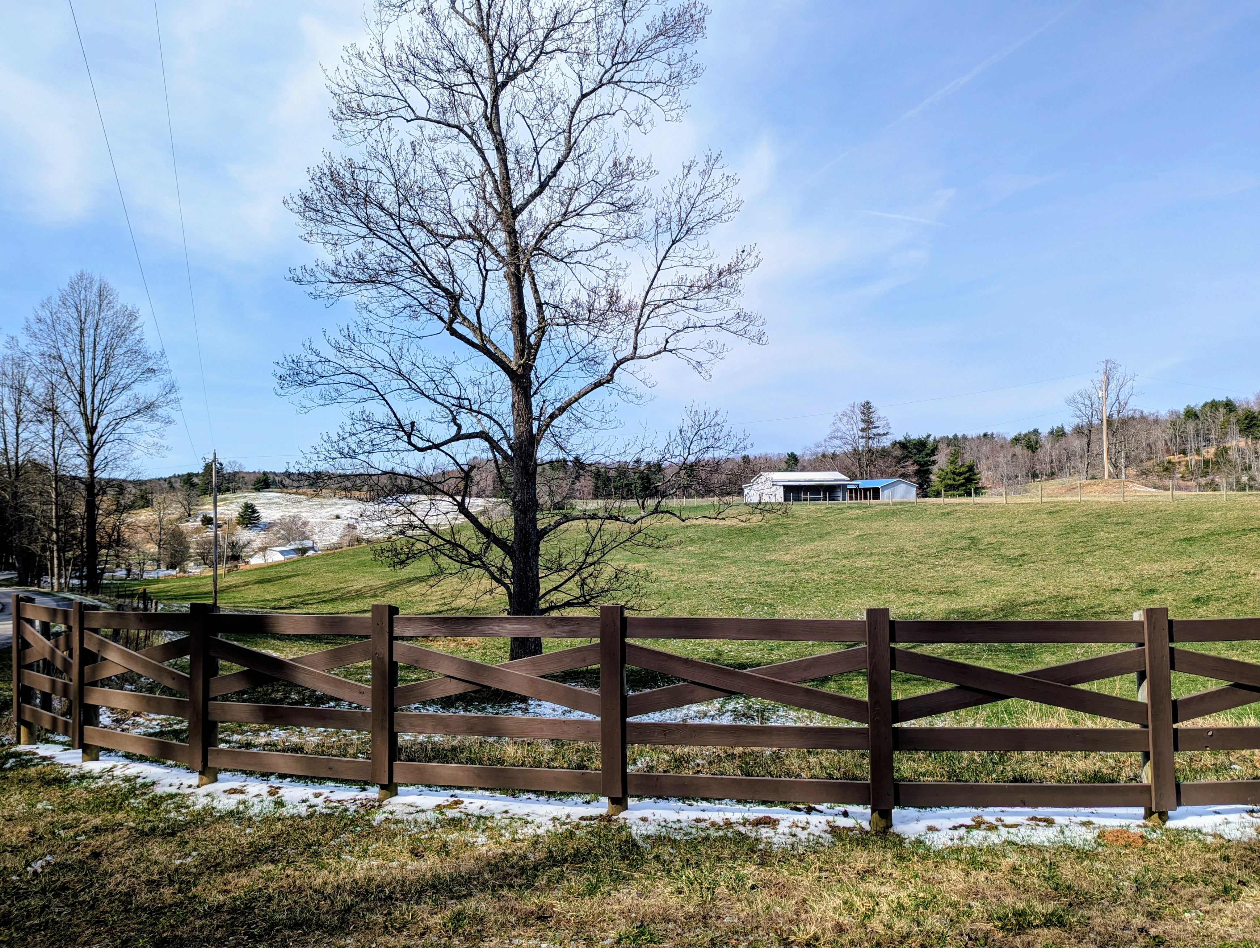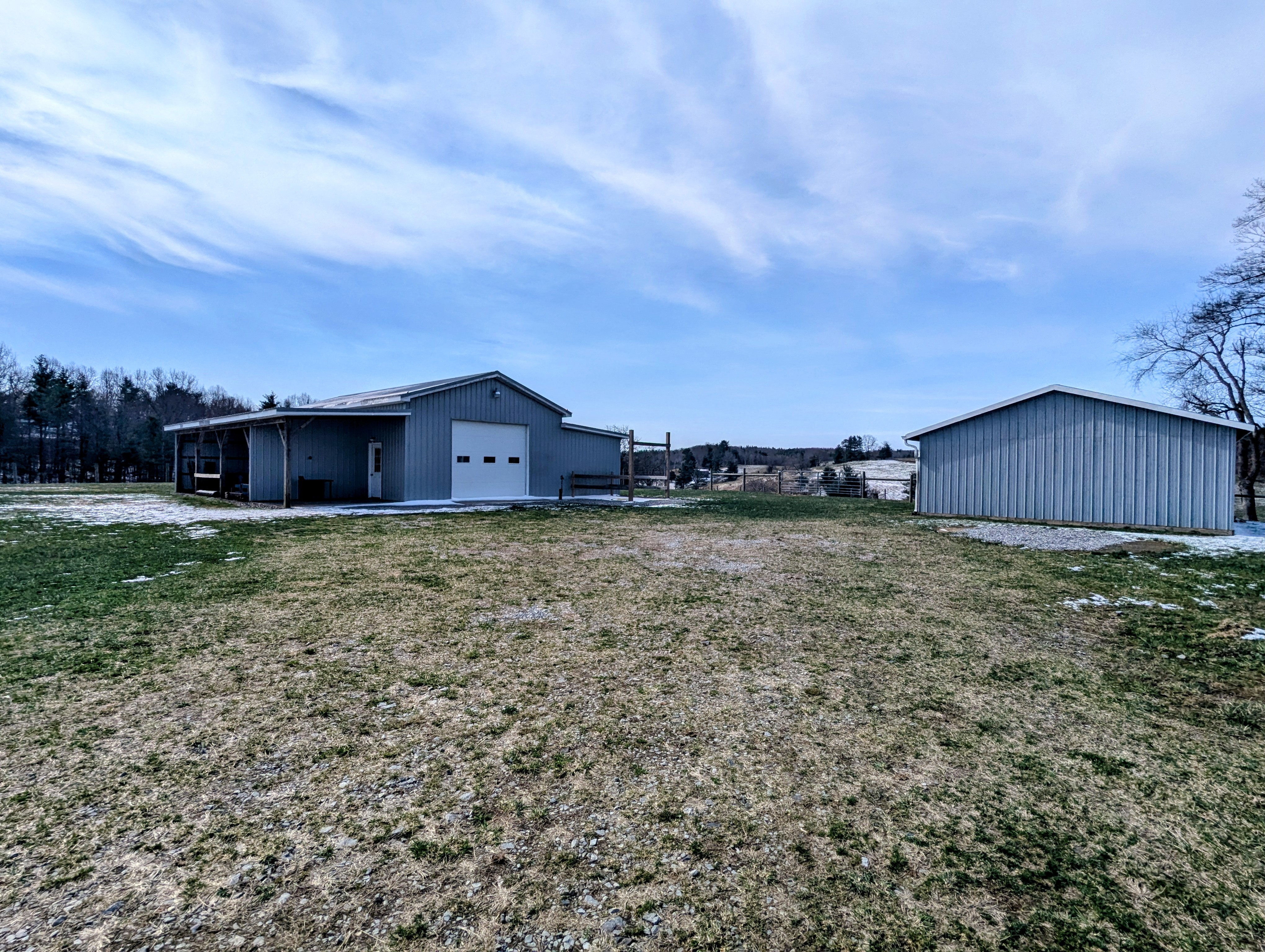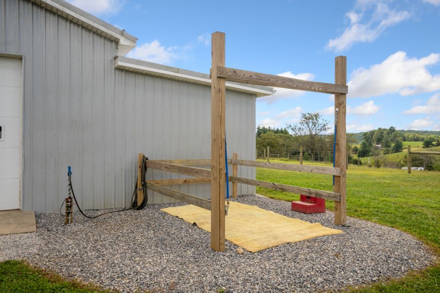 The property is improved with quality fencing, 3 fenced pasture areas for rotational grazing, 4 horse stalls, horse wash stall, run-in shed, 3 Ritchie water boxes, and a 50'x30' equipment building with concrete floor and 400 amp electric. Additional features include heat pump, mini splits, outdoor wood stove, 20kw generator, fiber internet, new well pump and pressure tank in 2025, level access from a state maintained paved road, and scenic views of surrounding farmland.