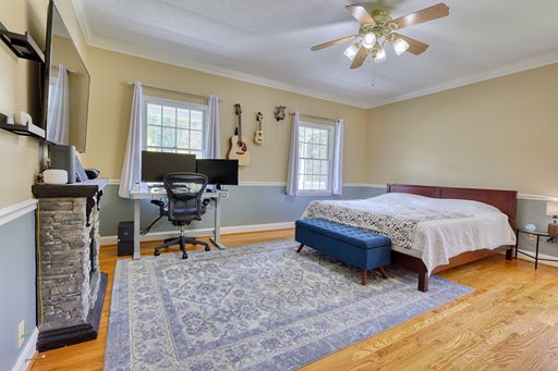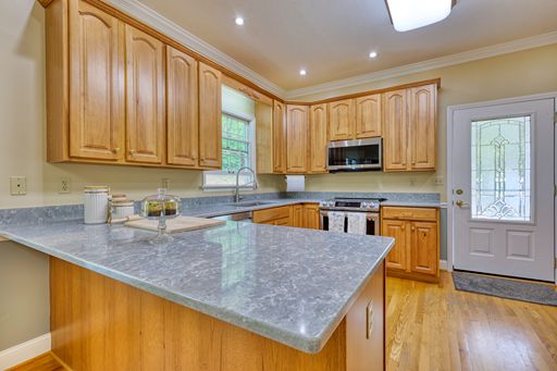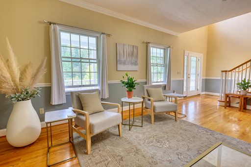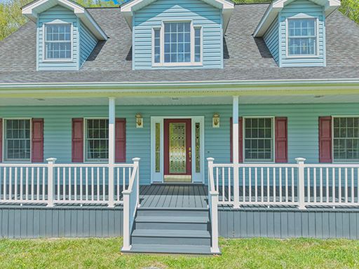 Discover this beautiful Cape Cod style home, situated on a 1.25-acre lot in the desirable Riner/Floyd area. This 3-bedroom, 2.5-bath residence is designed for comfort and convenience, featuring a main-level primary suite and laundry for easy accessibility. The interior has been thoughtfully modernized with high-end updates, including a renovated kitchen with quartzite countertops and new appliances, marble bathroom counters, and fresh hardwood flooring upstairs. Recent mechanical upgrades include two new heat pumps, a tankless propane water heater, and a comprehensive water filtration system, ensure year-round efficiency and peace of mind.